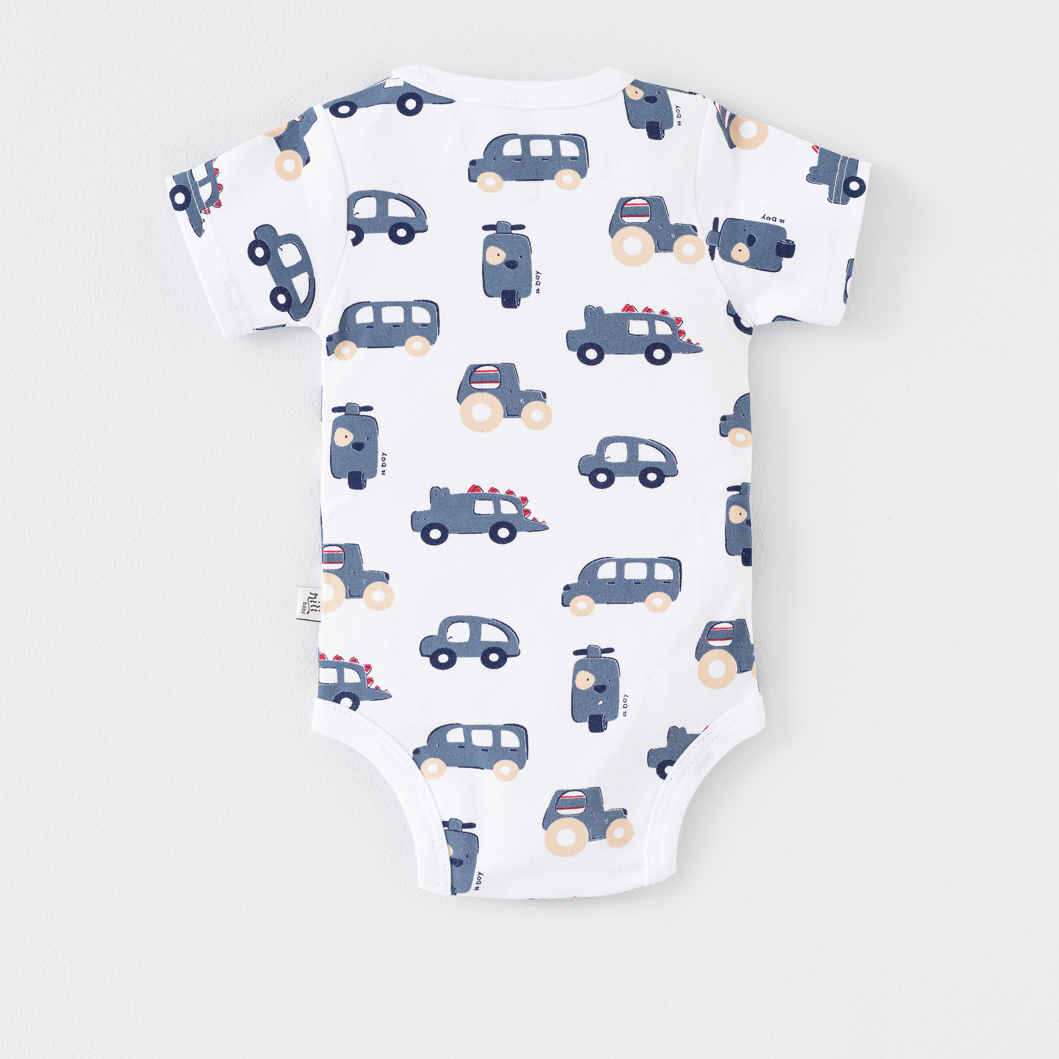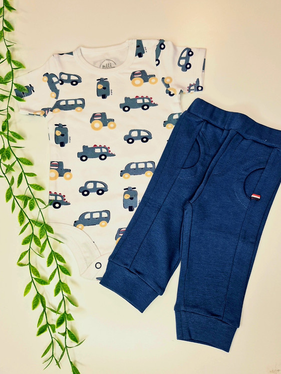 🏷 ست لباس نوزادی پنبه نیلی طرح ماشین