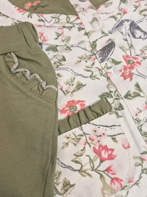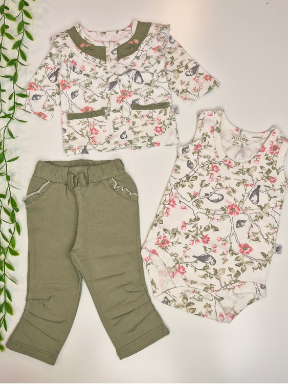 ست لباس پنبه نوزادی نیلی طرح گنجشک