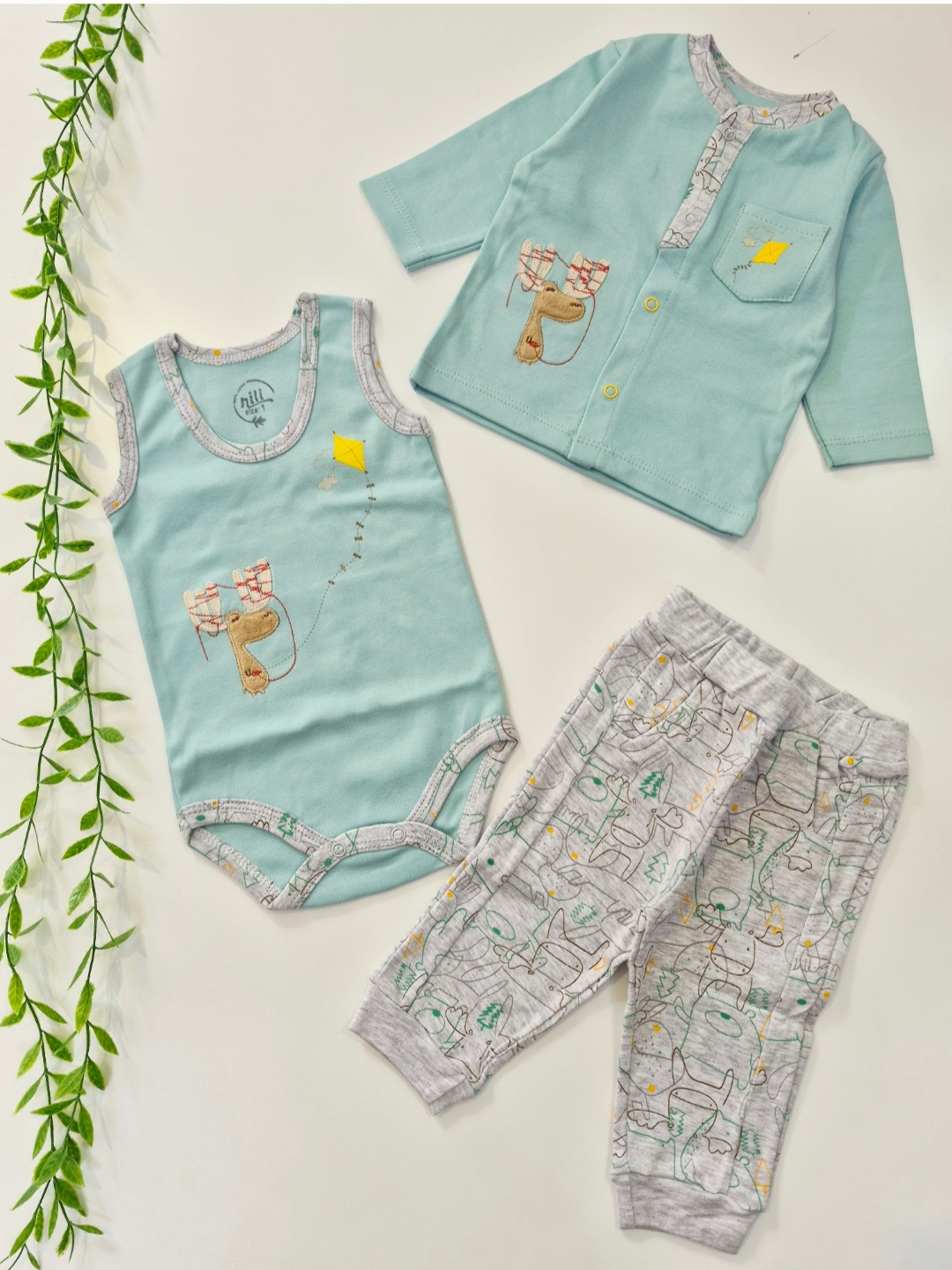 🏷 ست پنبه ۳ تکه نیلی طرح گوزن
