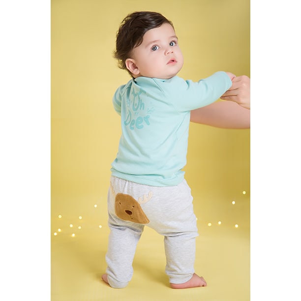 🏷 ست لباس نوزادی پنبه نیلی طرح گوزن