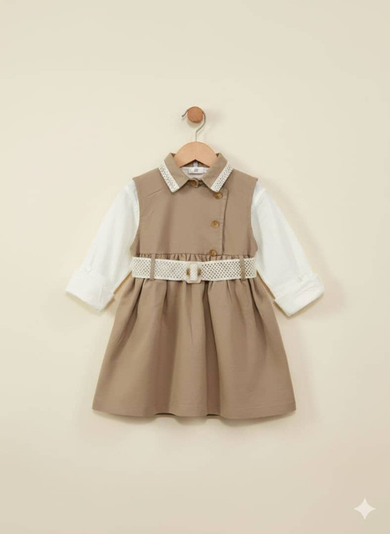 شومیز و سارافون کتان دو تکه دخترانه