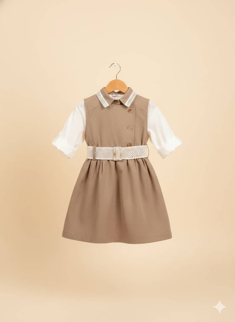 شومیز سارافون کتان ۲تکه دخترانه