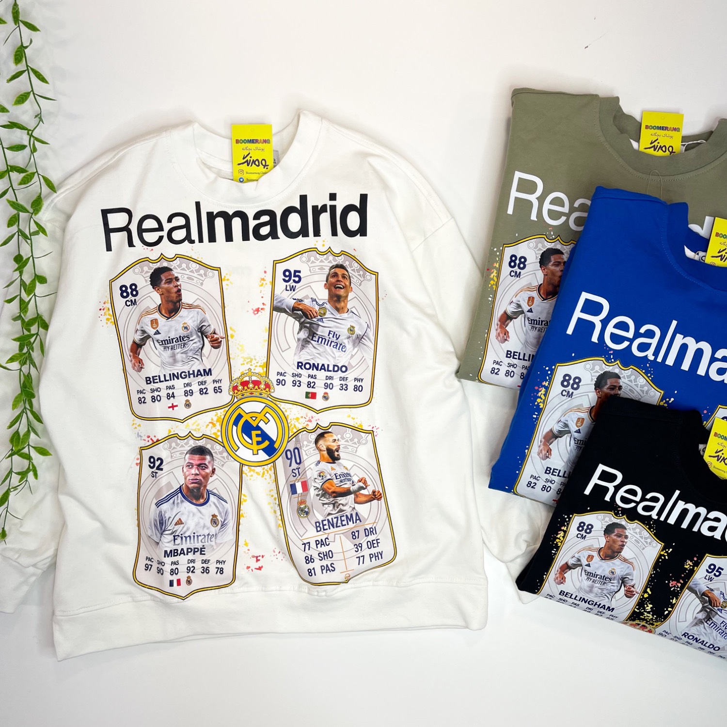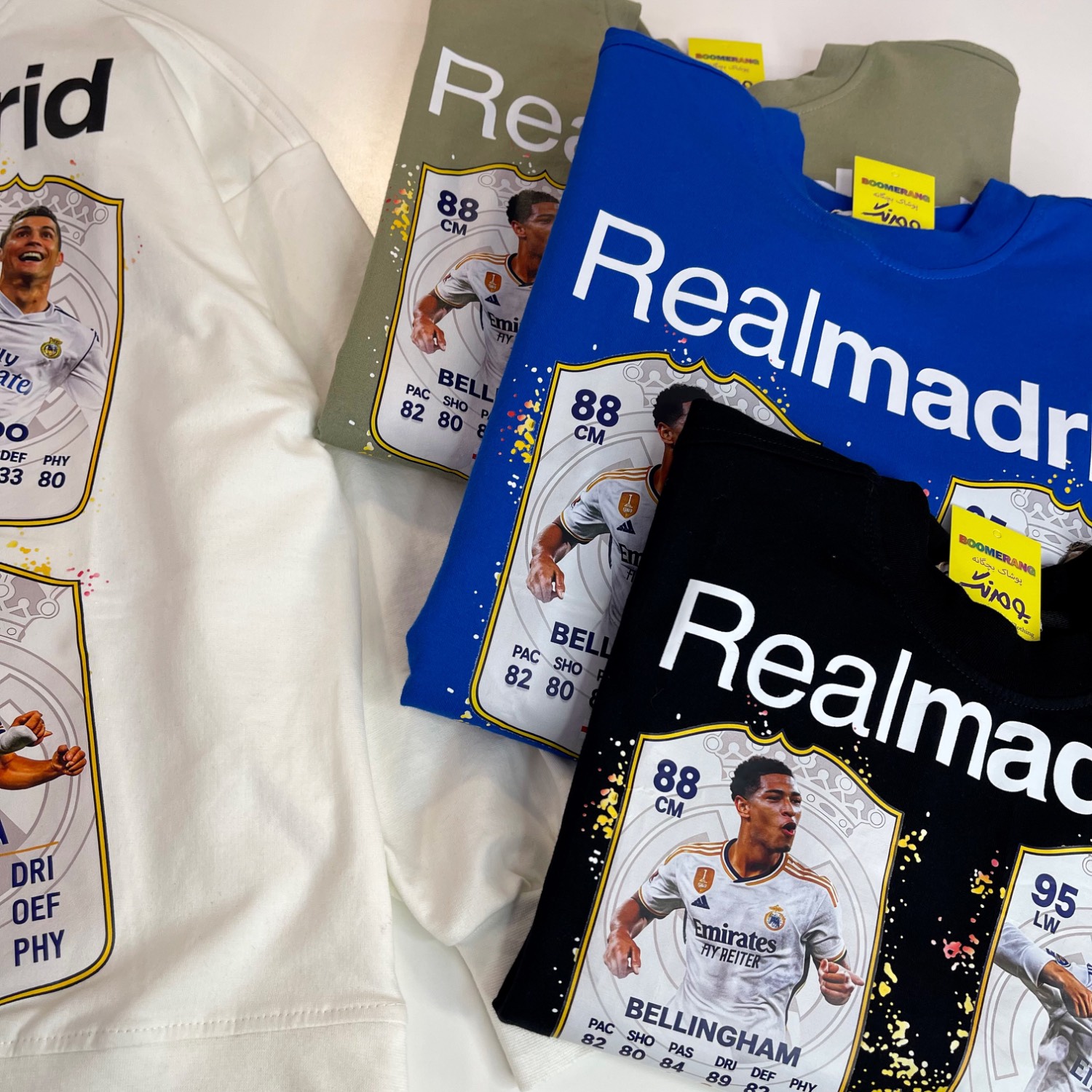 پشت و روی لباس چاپ تیم فوتبال رئال مادرید دارد