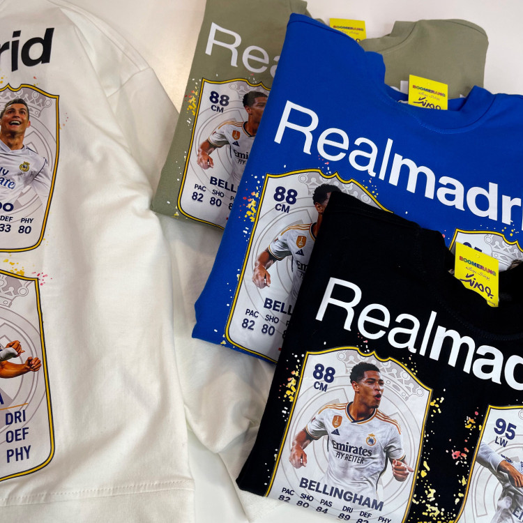 جزئیات: پشت و روی لباس چاپ تیم فوتبال رئال مادرید دارد