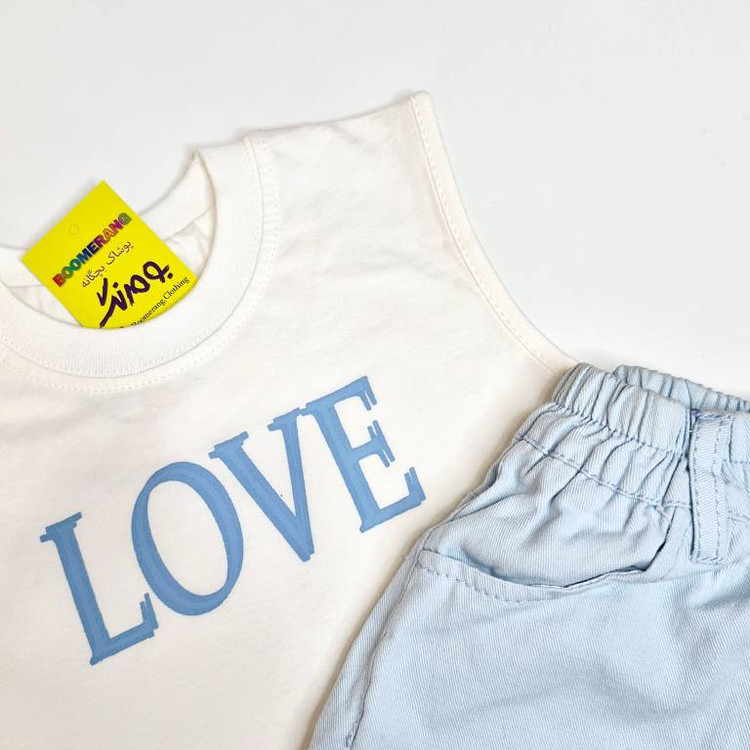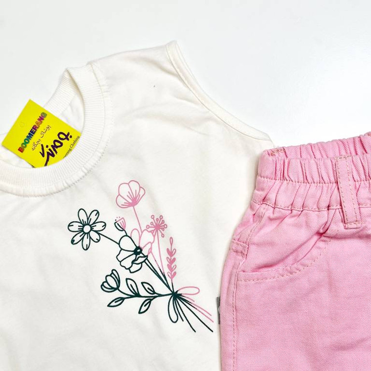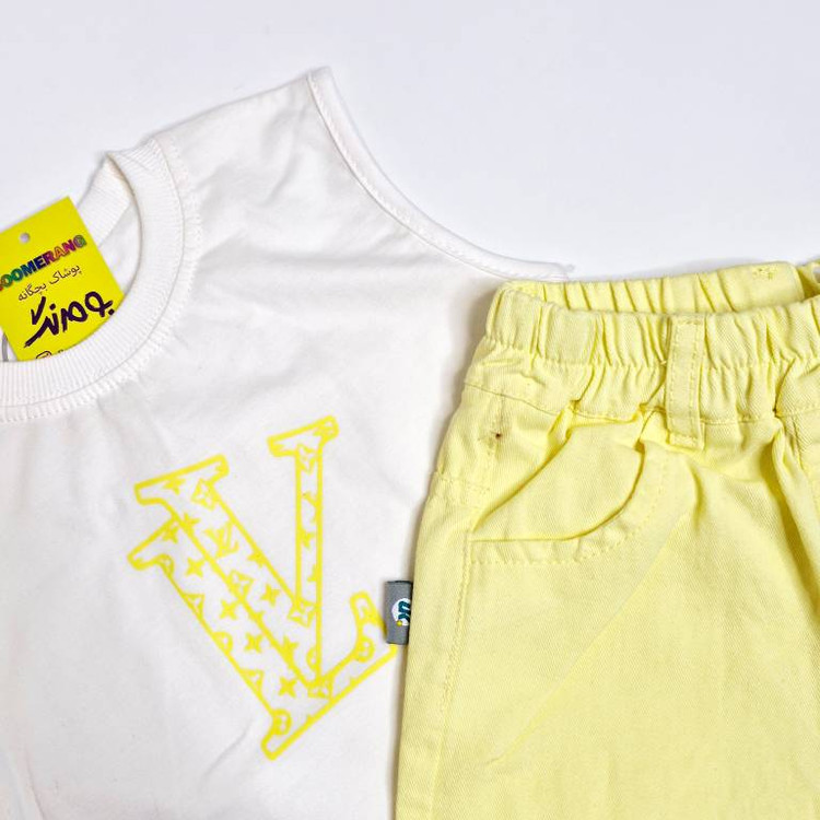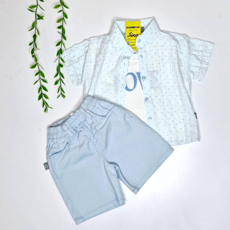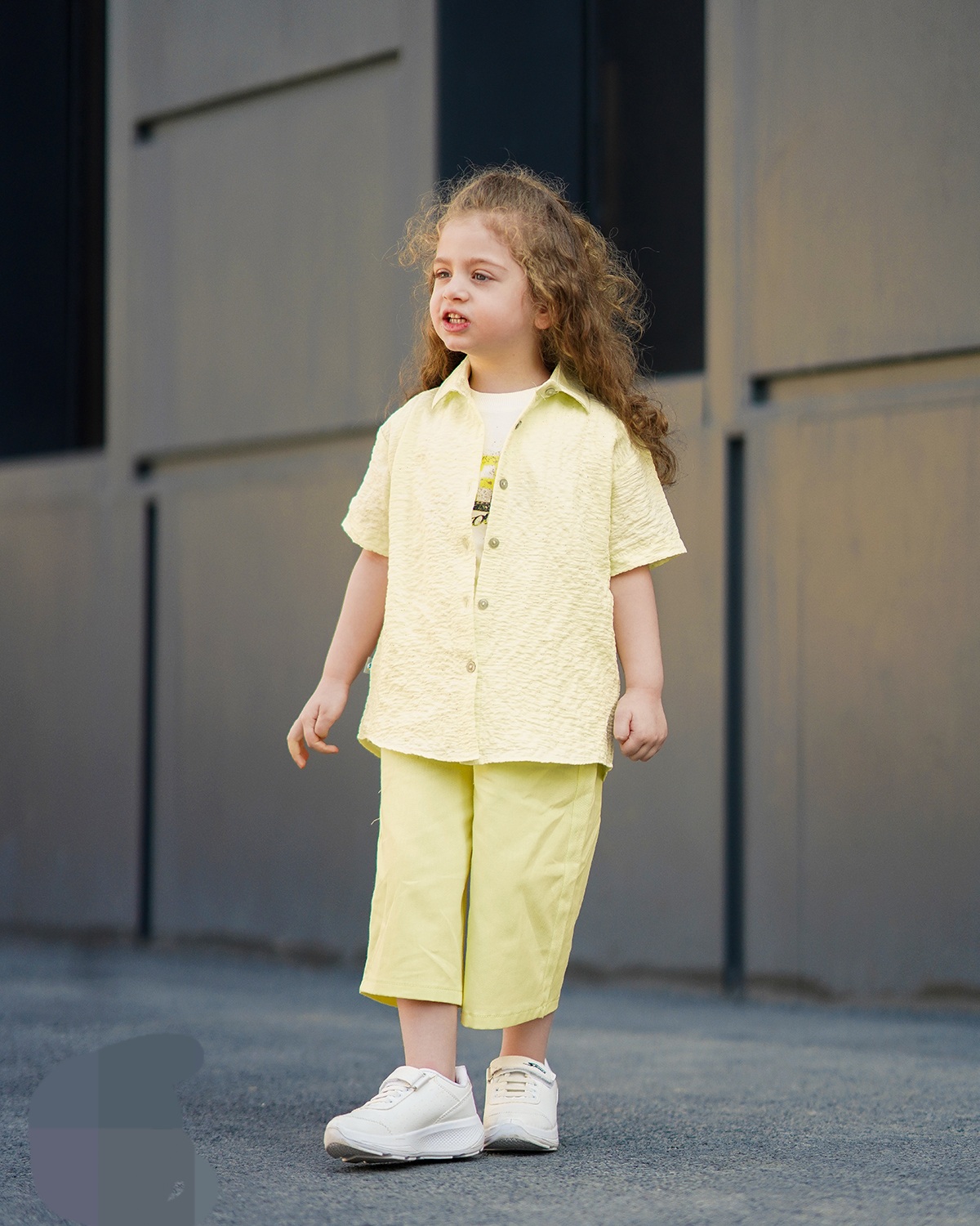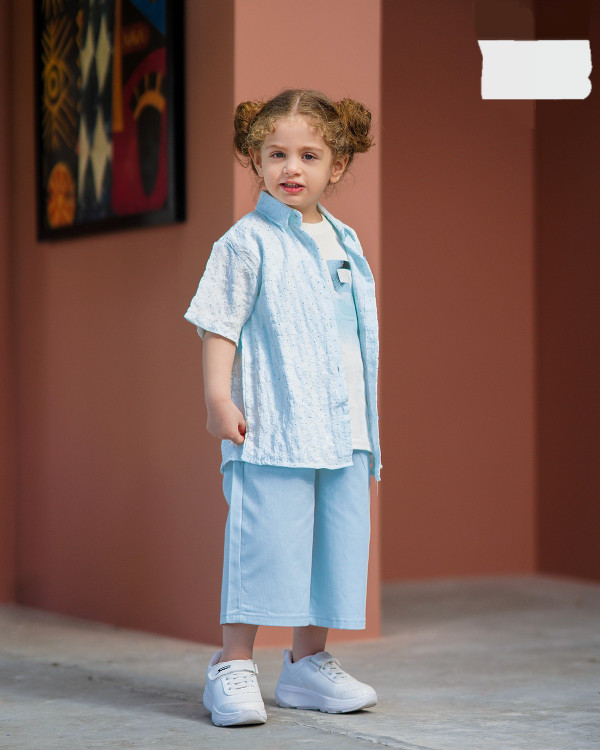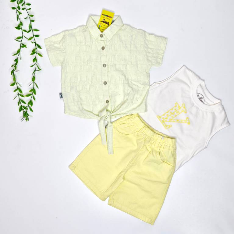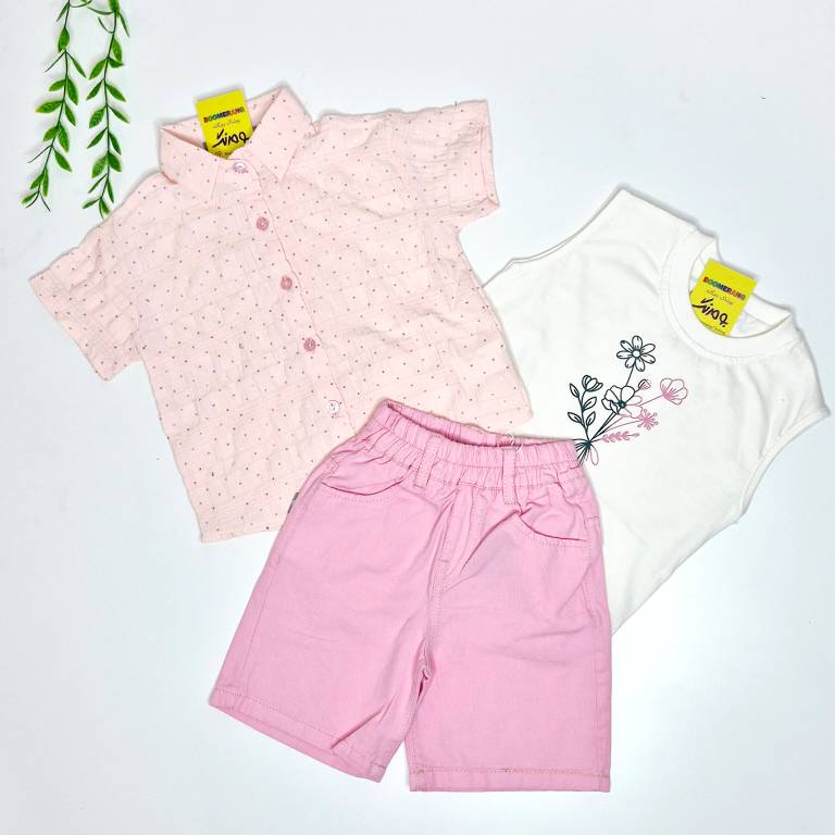 شومیز شلوارک کتان و تاپ ست ۳ تکه دخترانه سایز ۹ ماه تا ۶ سال